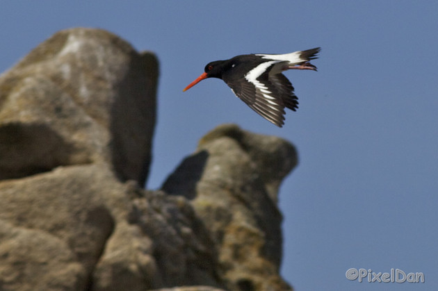 L'huitrier pie est la sentinelle de nos côtes . Son crie caractéristique lorsque l'on s'approche du rivage est bien reconnaissable comme son allure.